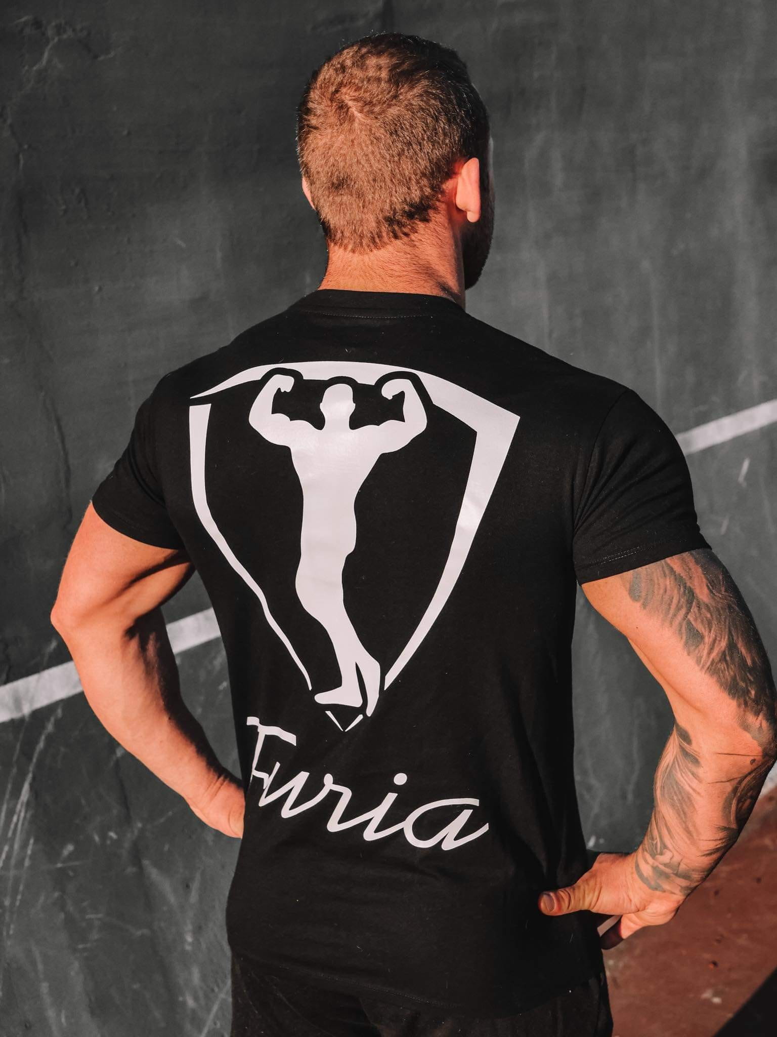 Koszulka męska FURIA z nadrukiem odpornym na ścieranie i zniekształcenia. Specjalnie wzmocnienie na ramionach i specjalnym ściągaczem z dodatkiem elastanu. Nadruk został wykonany za pomocą sitodruku. Koszulka posiada metkę firmową naszego sklepu.