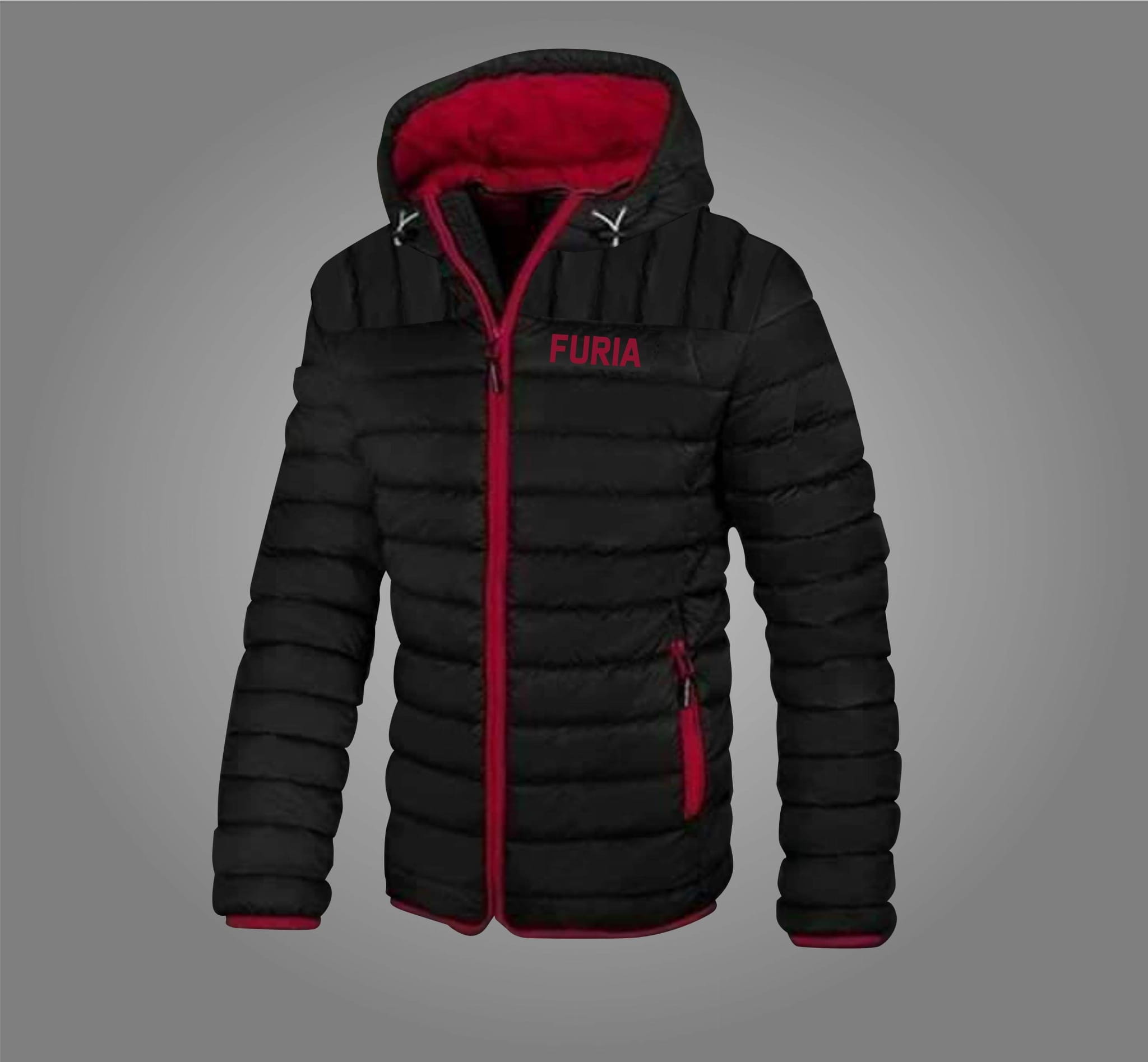 Kurtka pikowana w kolorze czarnym / wewnątrz czerwona(ale nie jest dwustronna).W środku ocieplina silikonowa średniej grubości (zapewnia doskonałą termoizolację).5 cm dwustronnie, 100% poliester, który zapewni wysoki komfort użytkowania.