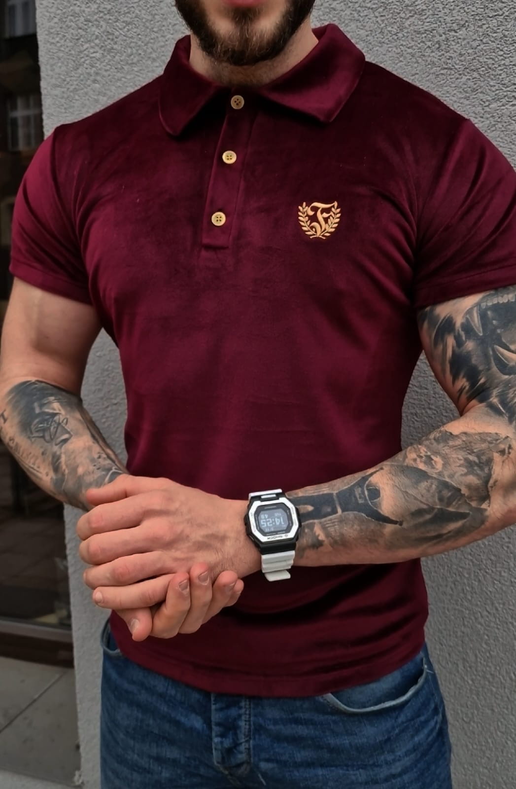 Wzbogać swoją kolekcję o elegancję i komfort z naszą nową koszulką polo - welurowa męska w kolorze bordo, marki FURIA. Wykonana z wysokiej jakości weluru o gramaturze 240g/m2, ta koszulka polo nie tylko prezentuje się stylowo, ale także zapewnia niezrównany komfort noszenia.