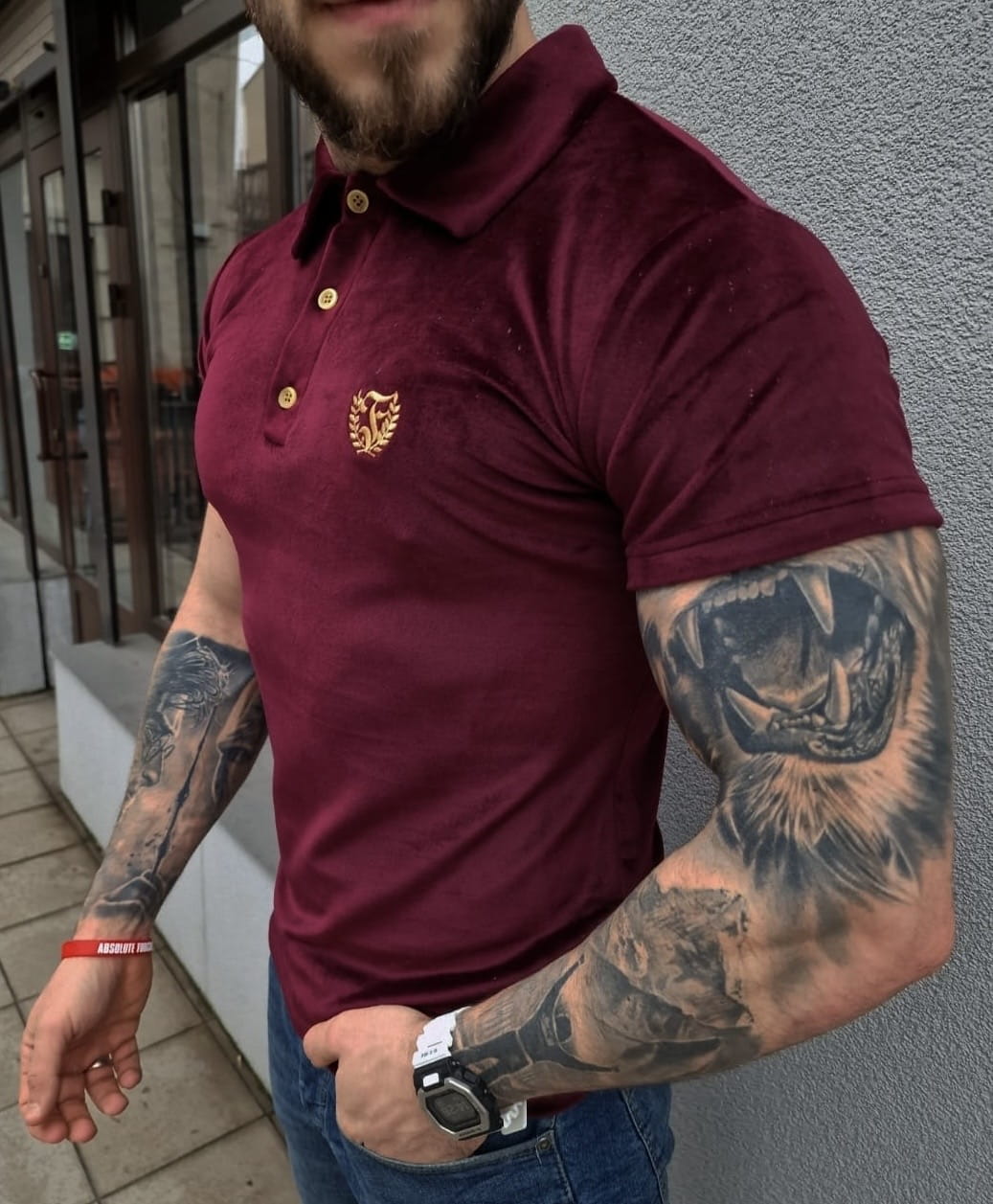 Koszulka Polo welurowa męska bordowa Furia
