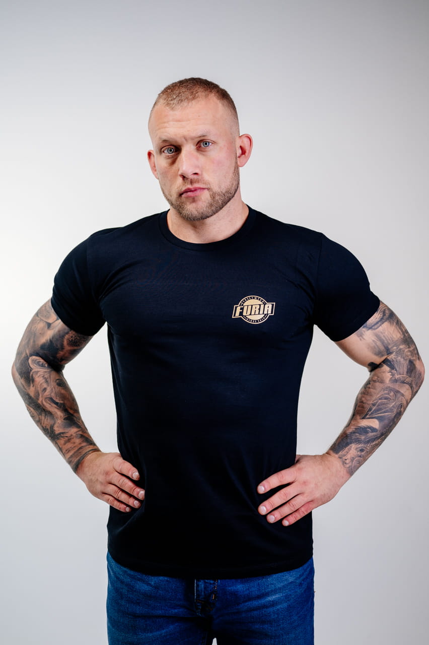 Koszulka męska FURIA z nadrukiem odpornym na ścieranie i zniekształcenia. Specjalnie wzmocnienie na ramionach i specjalnym ściągaczem z dodatkiem elastanu. Nadruk został wykonany za pomocą sitodruku. Koszulka posiada metkę firmową naszego sklepu.