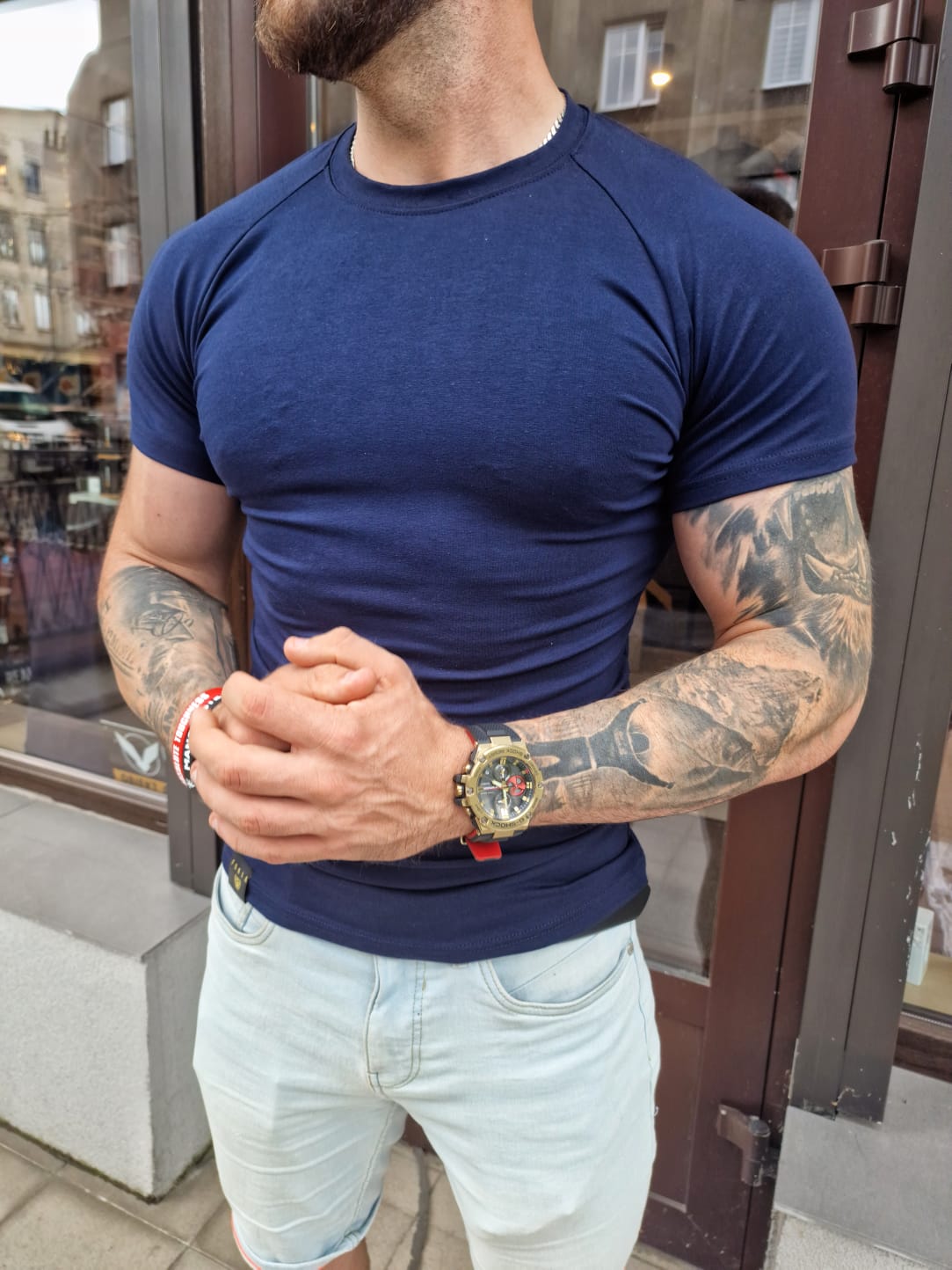 Koszulka męska z najnowszej kolekcji marki Furia, na dole koszulki ozdobna metka żakardowa.