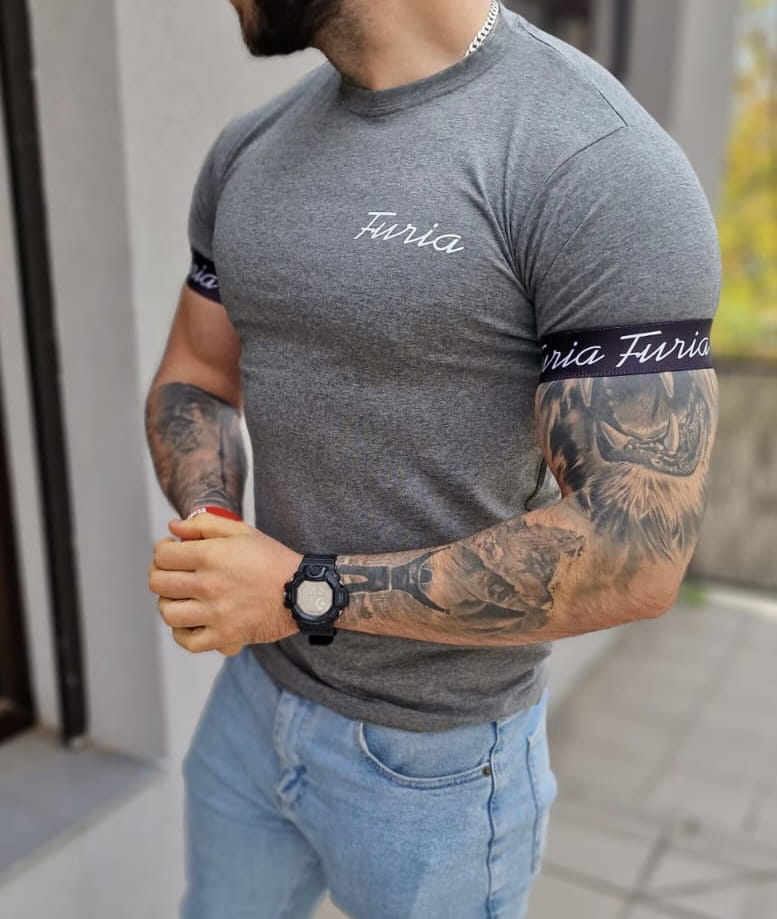 Koszulka sportowa grafitowa z czarną taśmą Furia